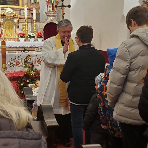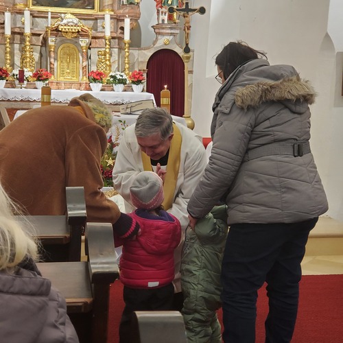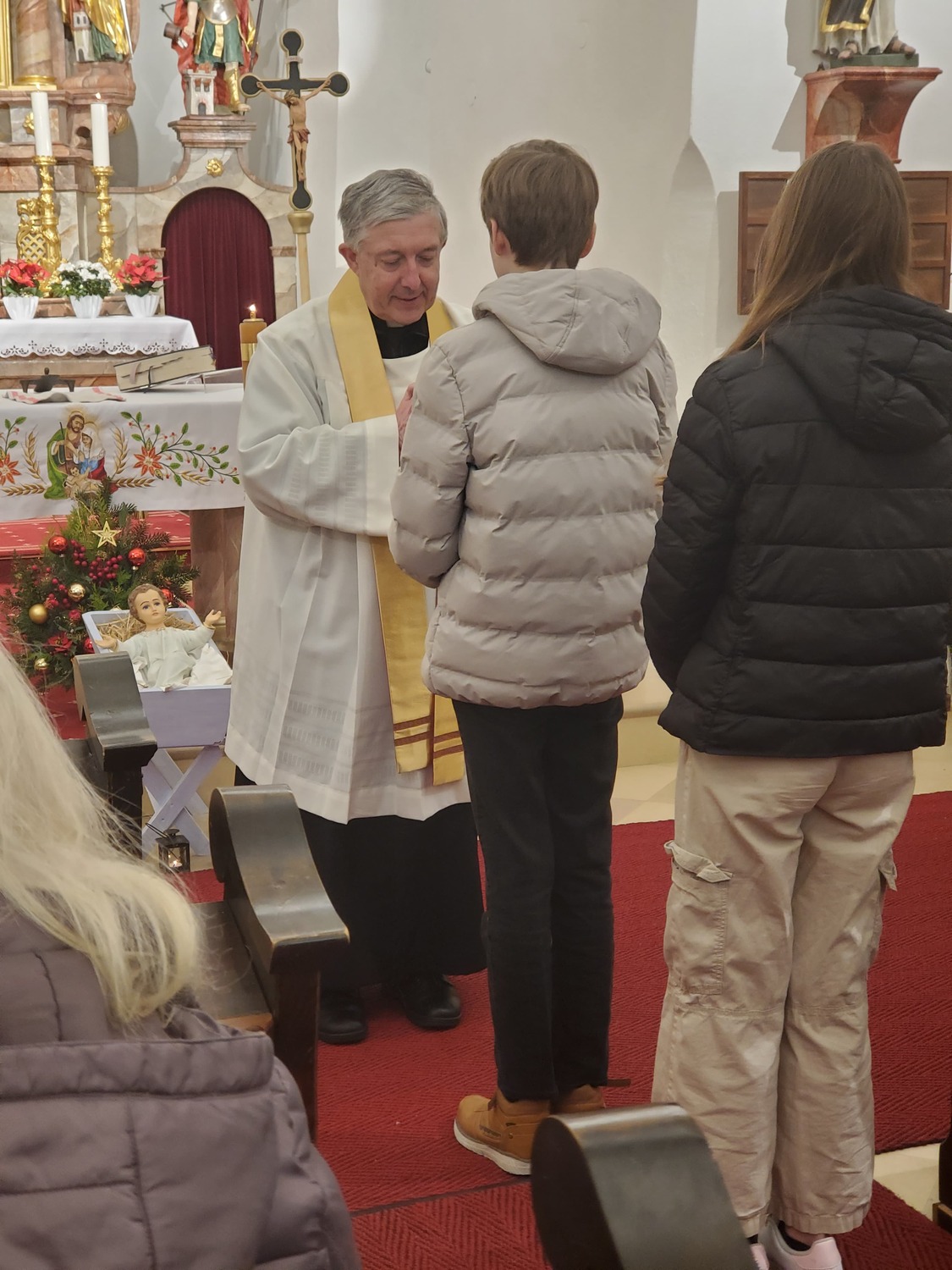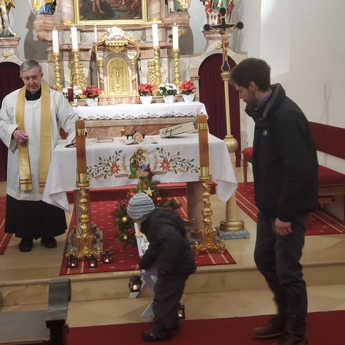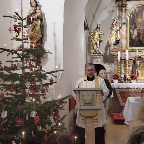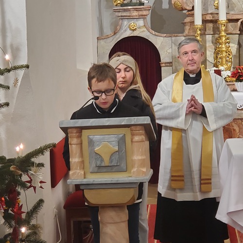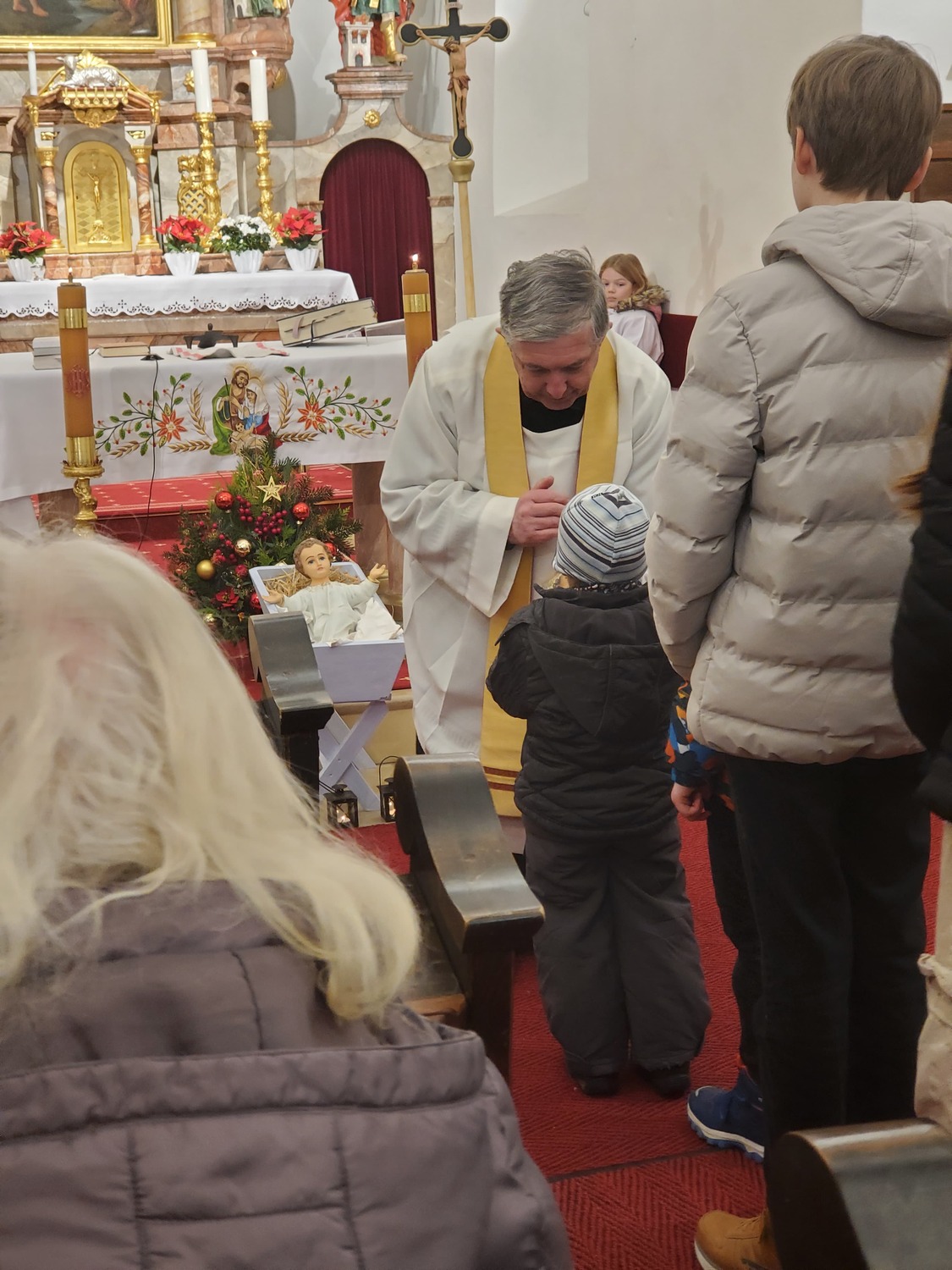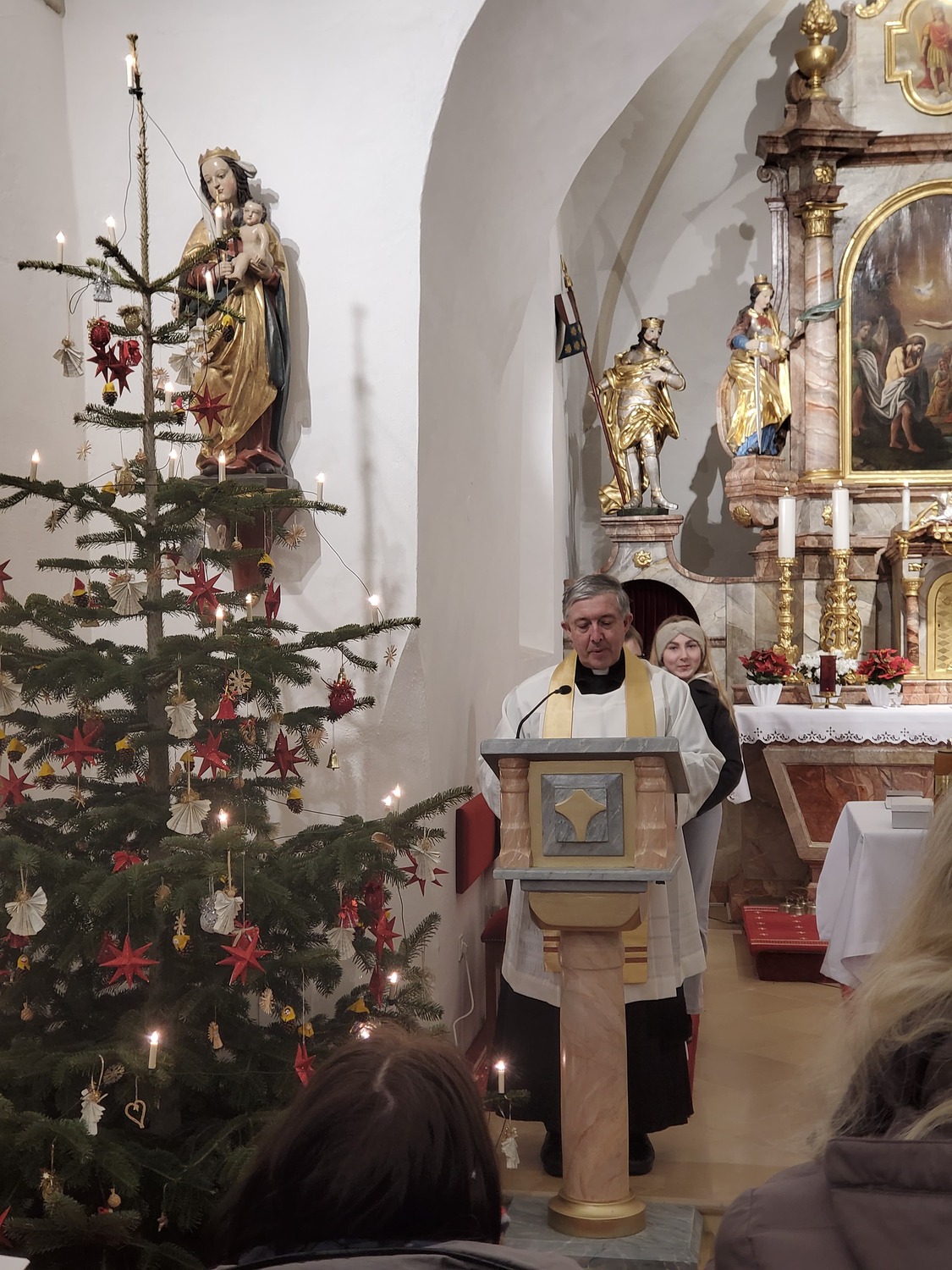 Kinder und Jugendliche aus der Pfarre gestalteten die Andacht mit Pfarrer Peter Rückl, welcher anschließend den besonderen Christkindlsegen den Anwesenden spendete.