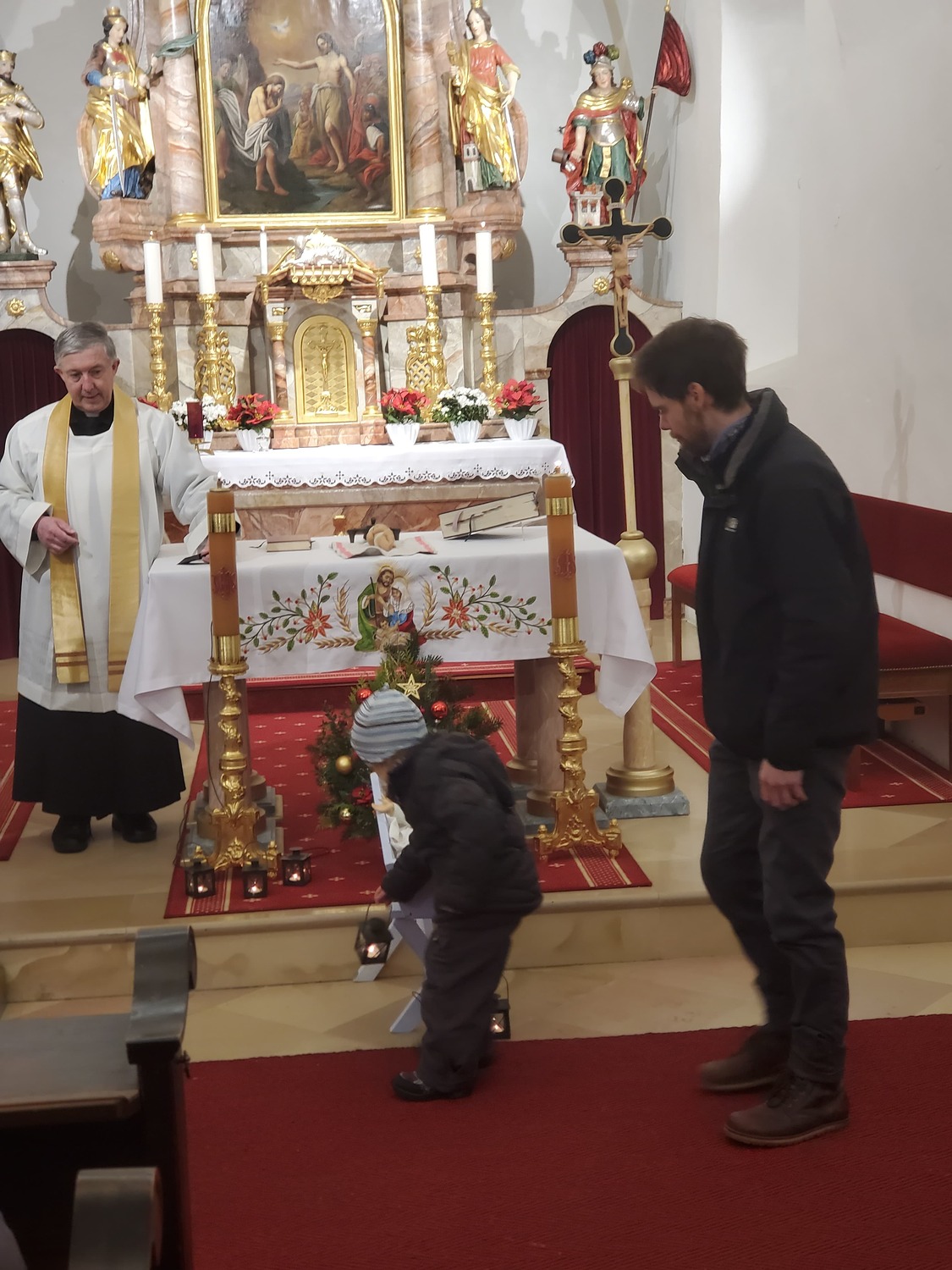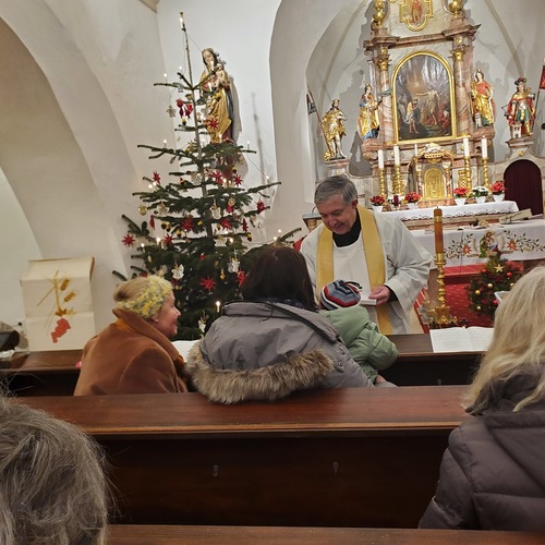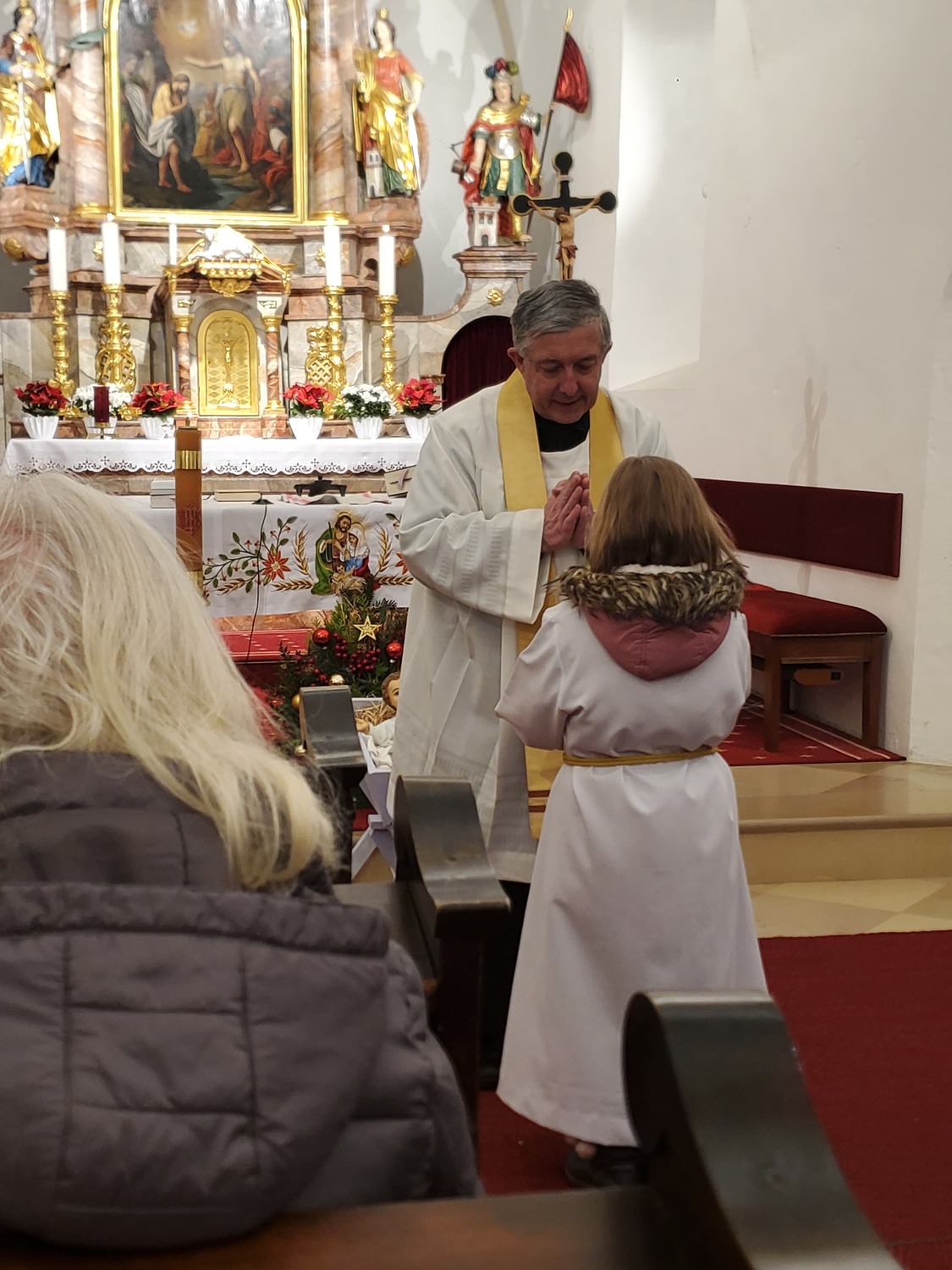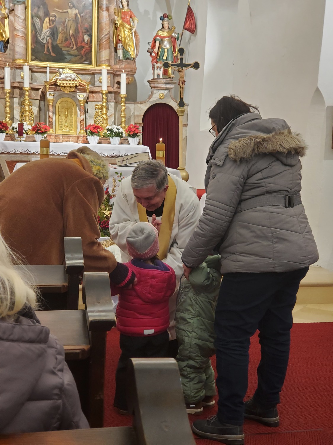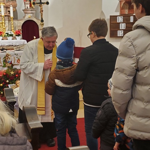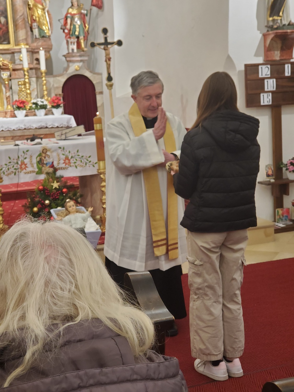 Kinder und Jugendliche aus der Pfarre gestalteten die Andacht mit Pfarrer Peter Rückl, welcher anschließend den besonderen Christkindlsegen den Anwesenden spendete.