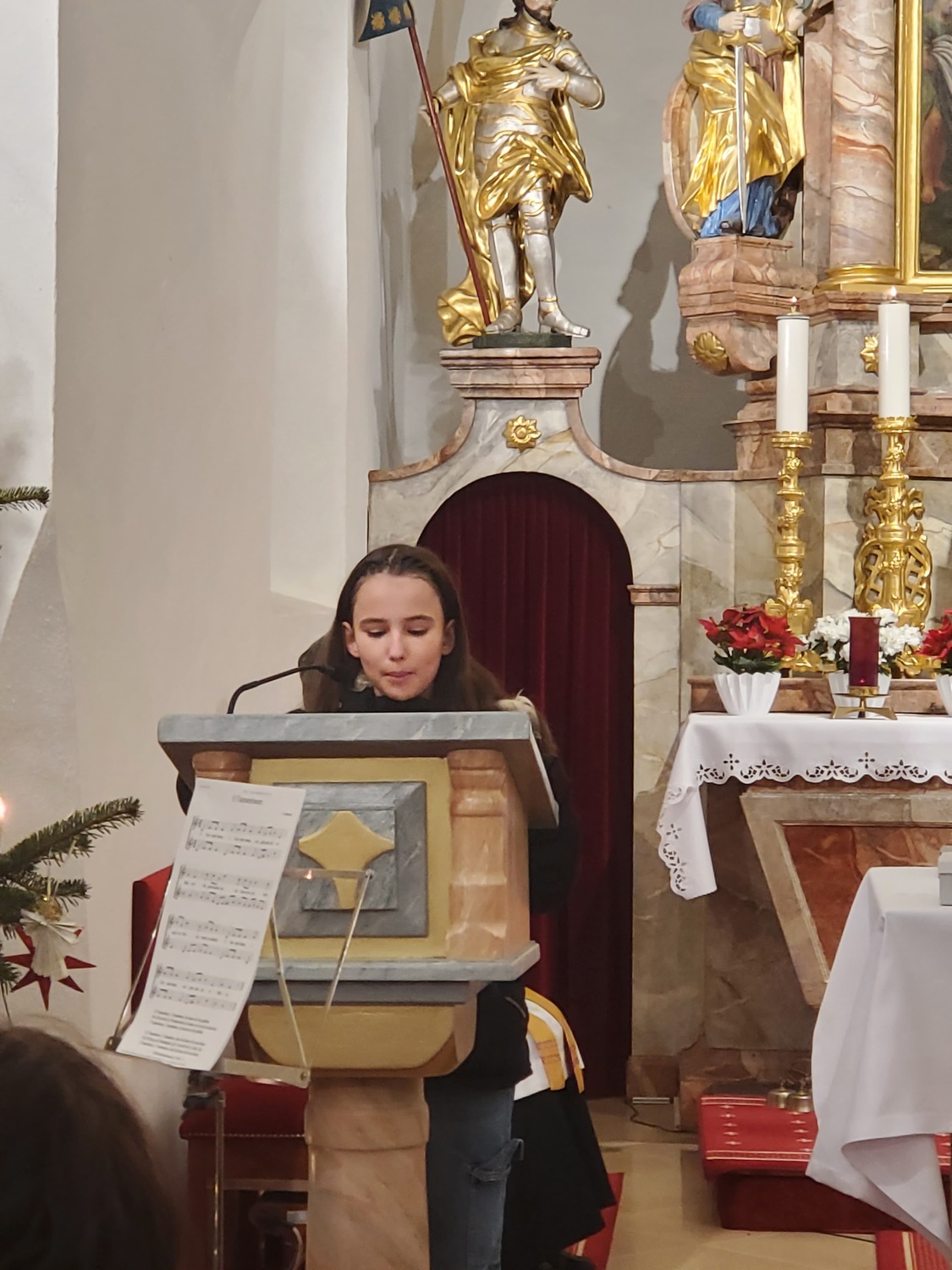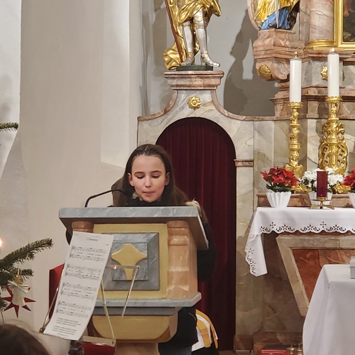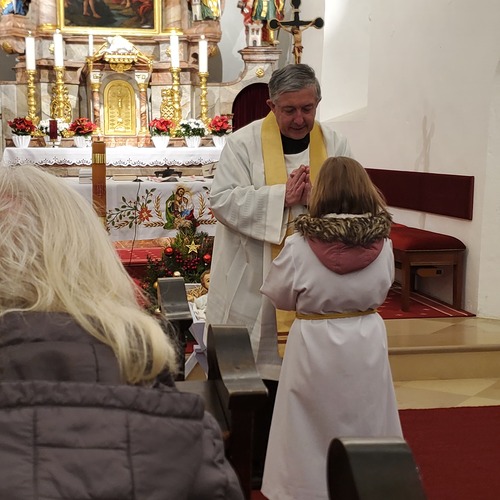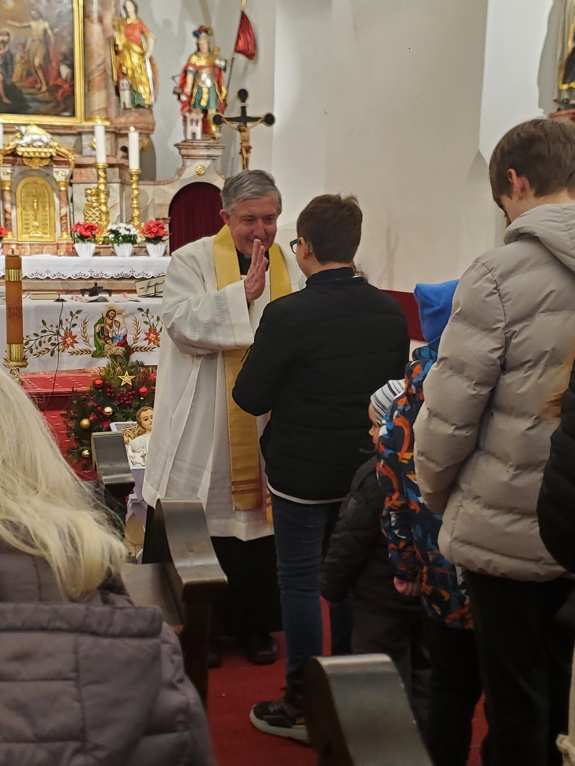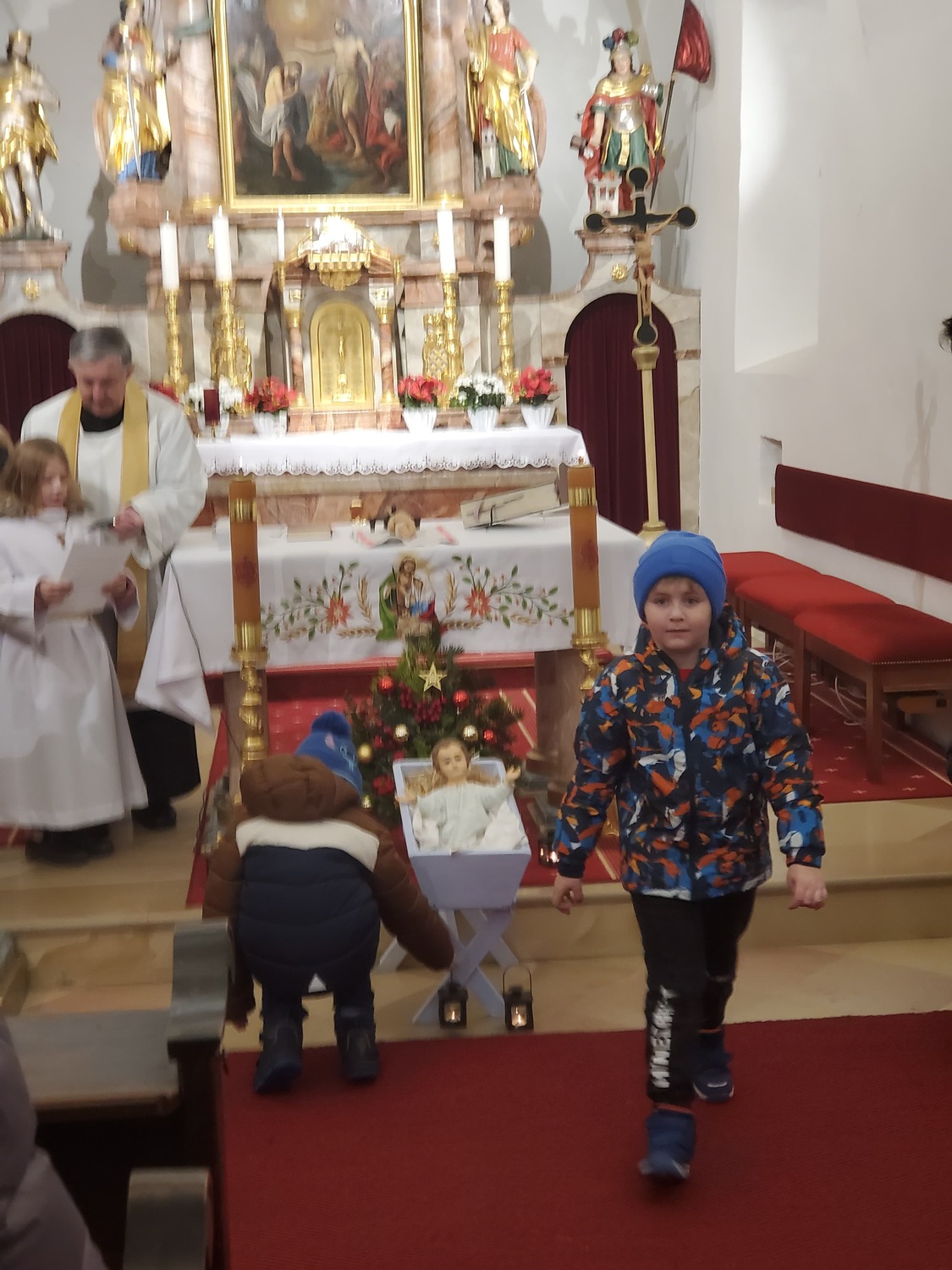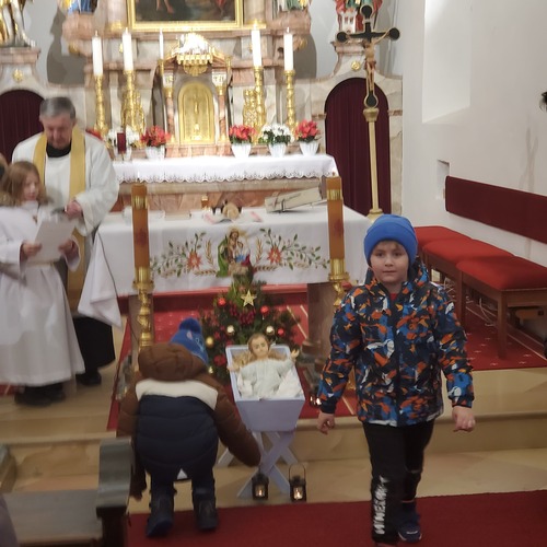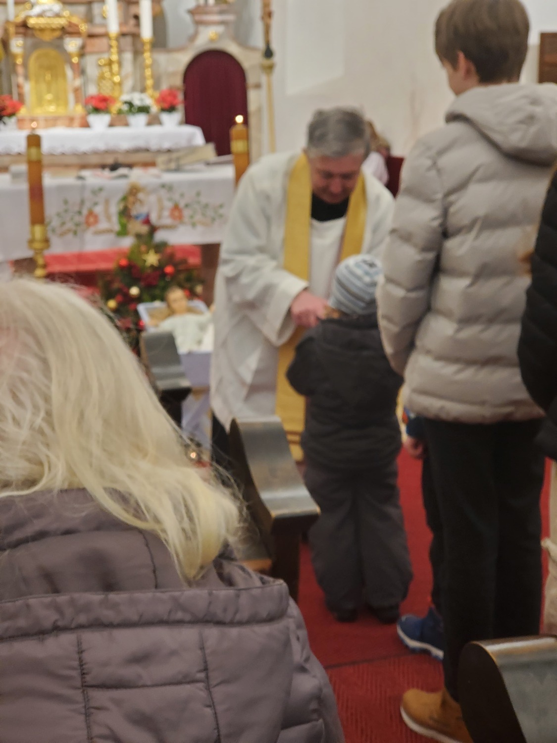 Kinder und Jugendliche aus der Pfarre gestalteten die Andacht mit Pfarrer Peter Rückl, welcher anschließend den besonderen Christkindlsegen den Anwesenden spendete.