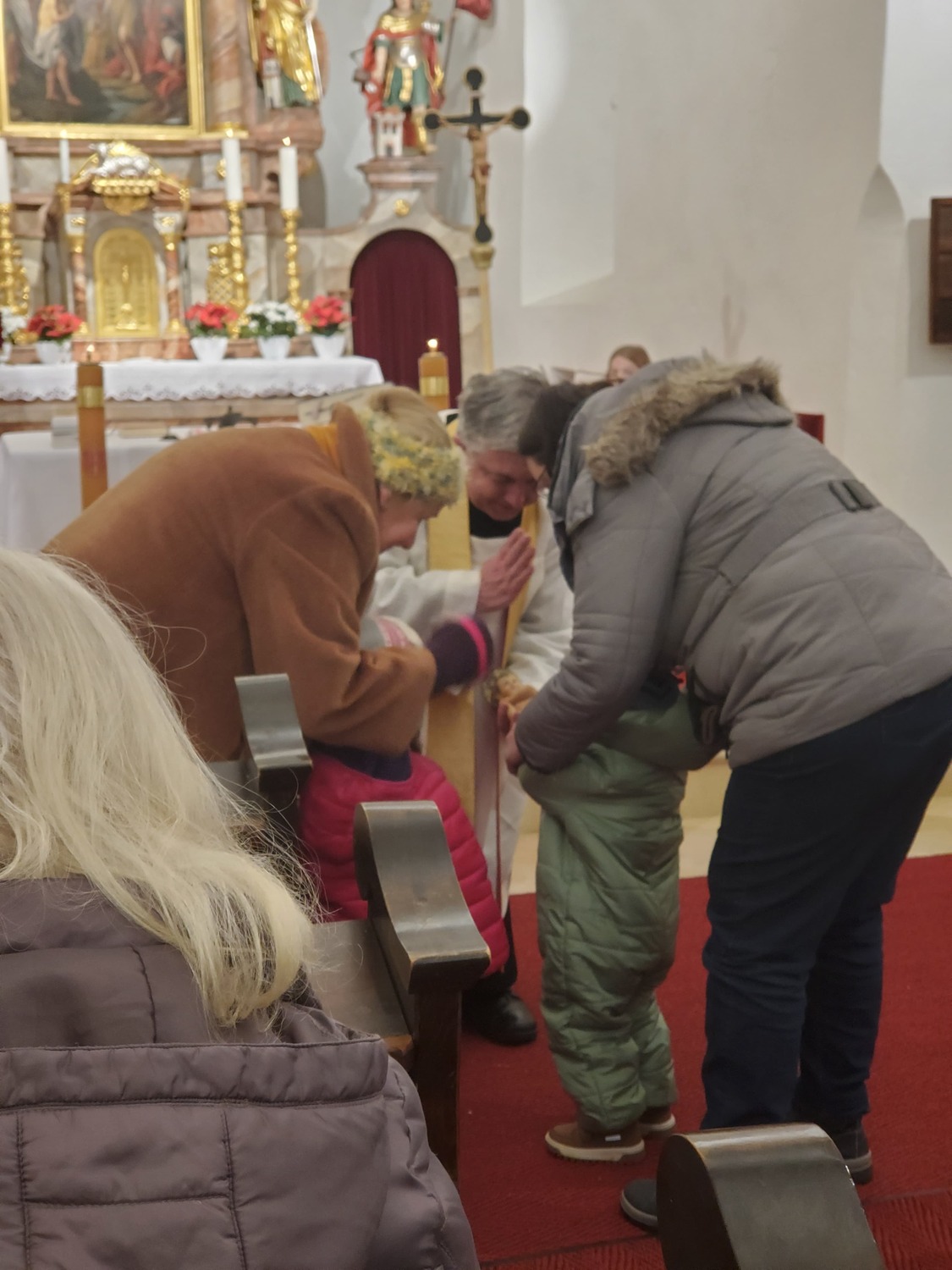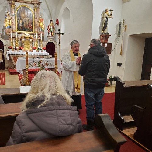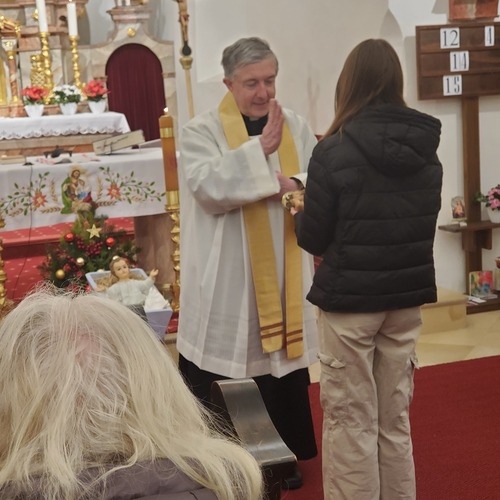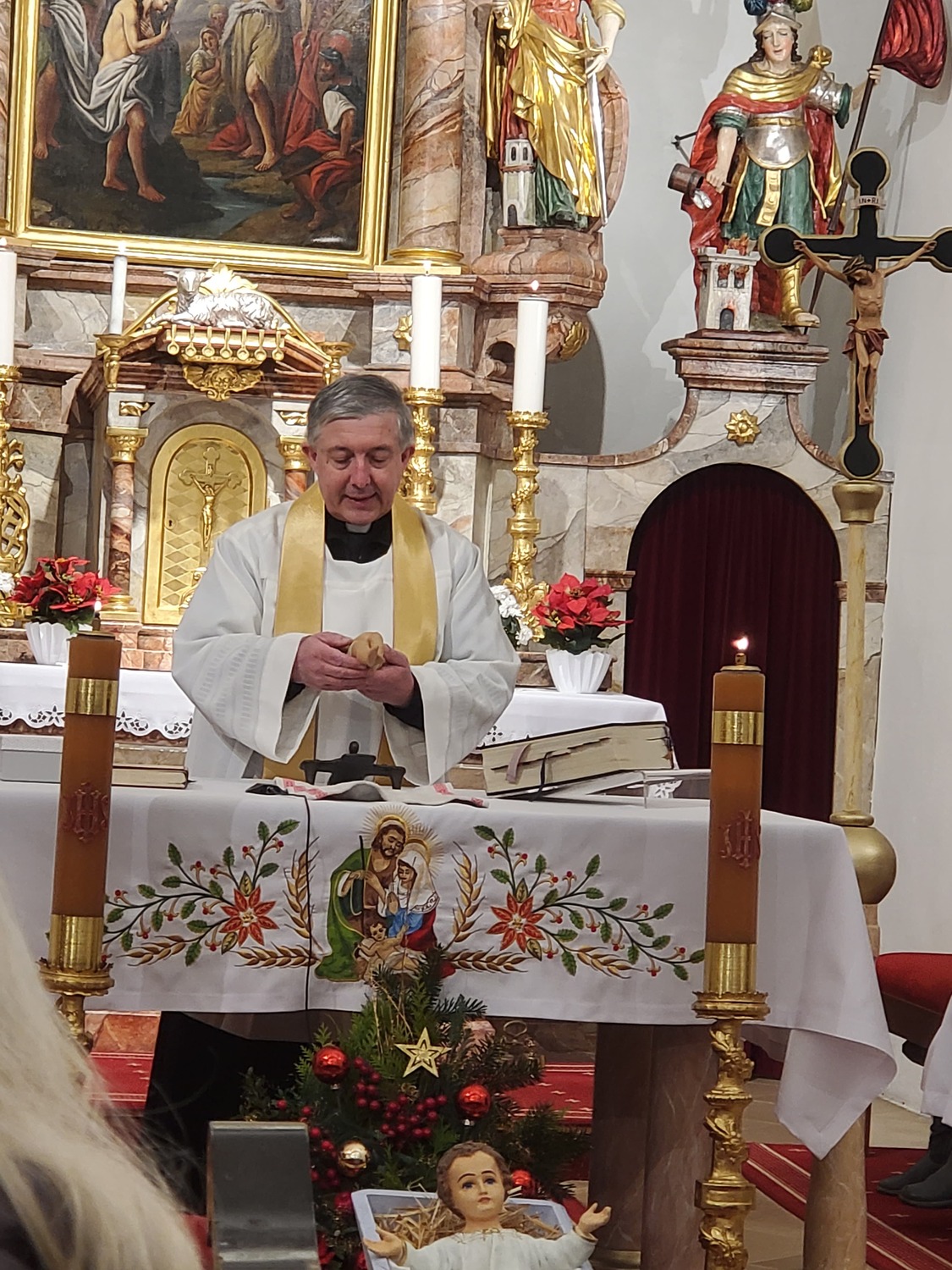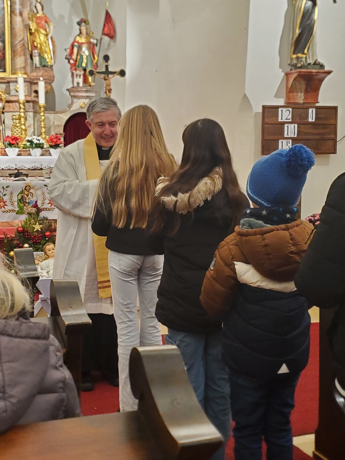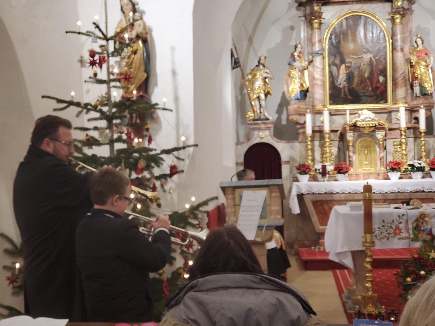Kinder und Jugendliche aus der Pfarre gestalteten die Andacht mit Pfarrer Peter Rückl, welcher anschließend den besonderen Christkindlsegen den Anwesenden spendete.