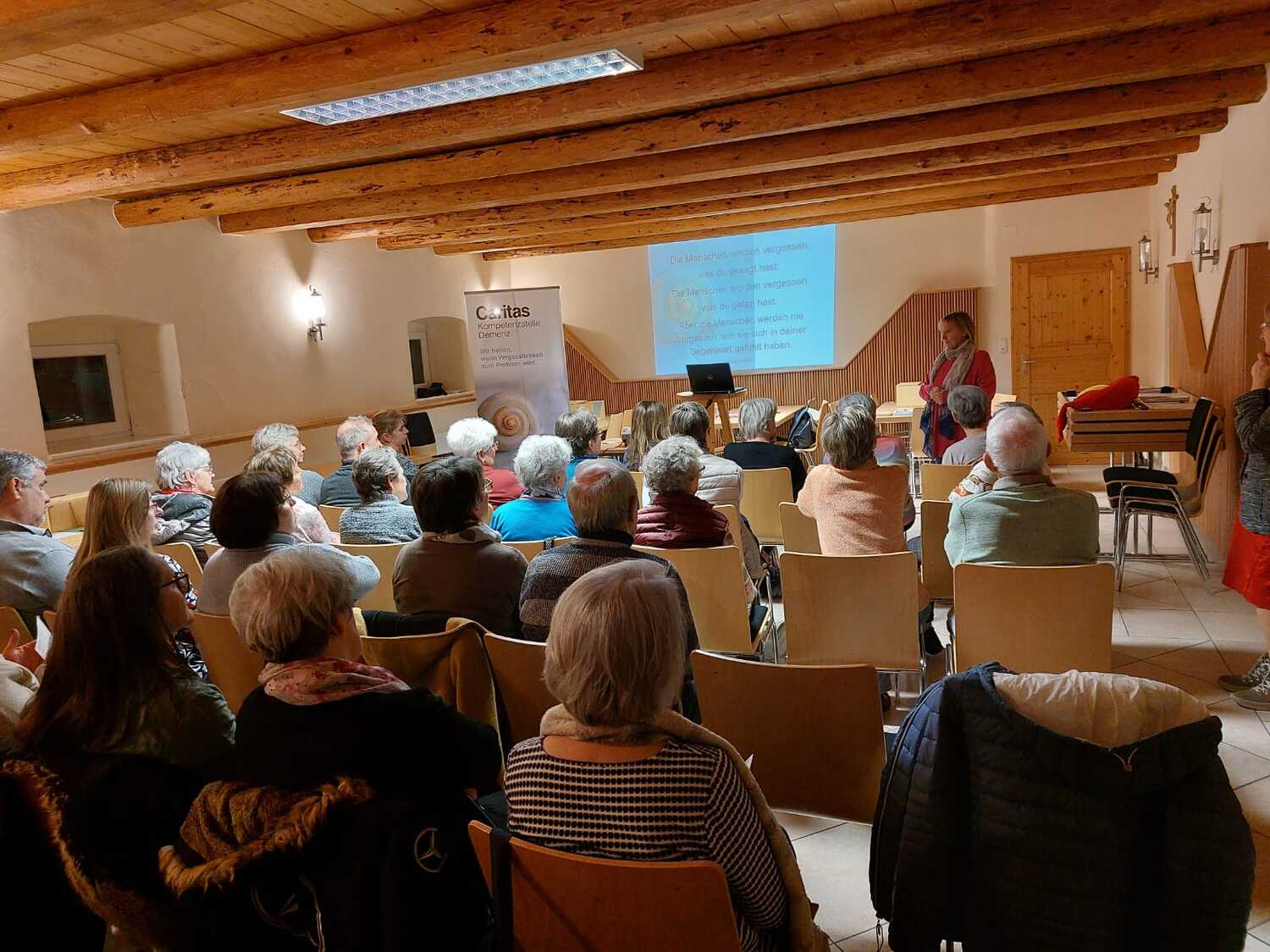 Frau Claudia Rathmanner von der Kompetenzstelle Demenz der Caritas sprach über die verschiedenen Formen der Demenz, wie man die Krankheit im Alltag erkennen und wie man Betroffene in schwierigen Situationen begleiten kann.