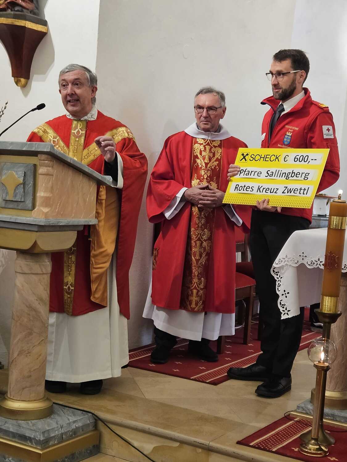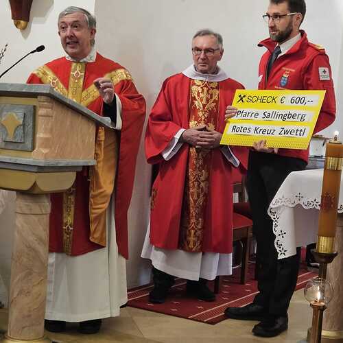 Am 23. März lud der PfGr. Sallingberg zum schon tratitionellen Fastensuppenesse in das Pfarrzentrum Sallingberg. Acht verschiedene Suppen konnten den Gästen angeboten werden. Einen herzlichen Dank den Köchinnen und Köchen für die geschmackvollen Suppen. Die Gäste honorieten dieses große Suppenangebot, so konnte ein Gesaamtbetrag von € 600.-- an den Bezirkstellenleiter des Roten Kreuzes Zwettl am Palmsonntag überreicht werden.
