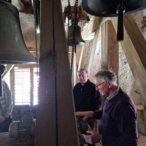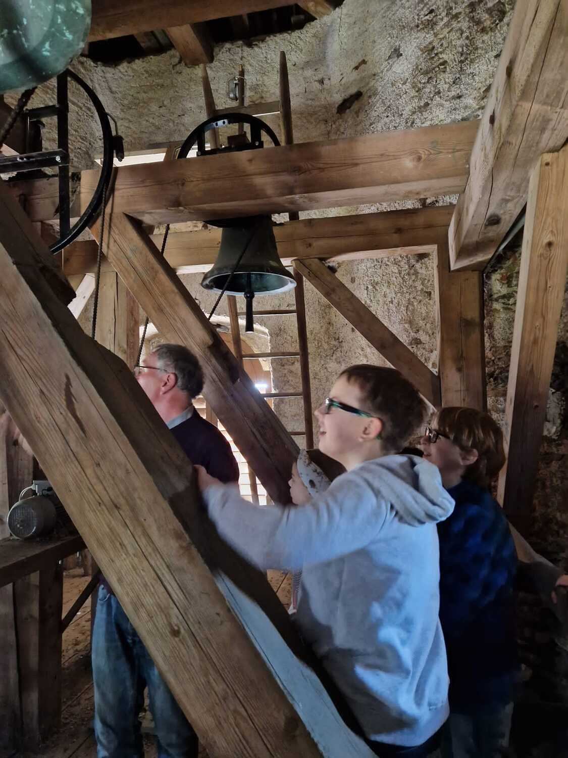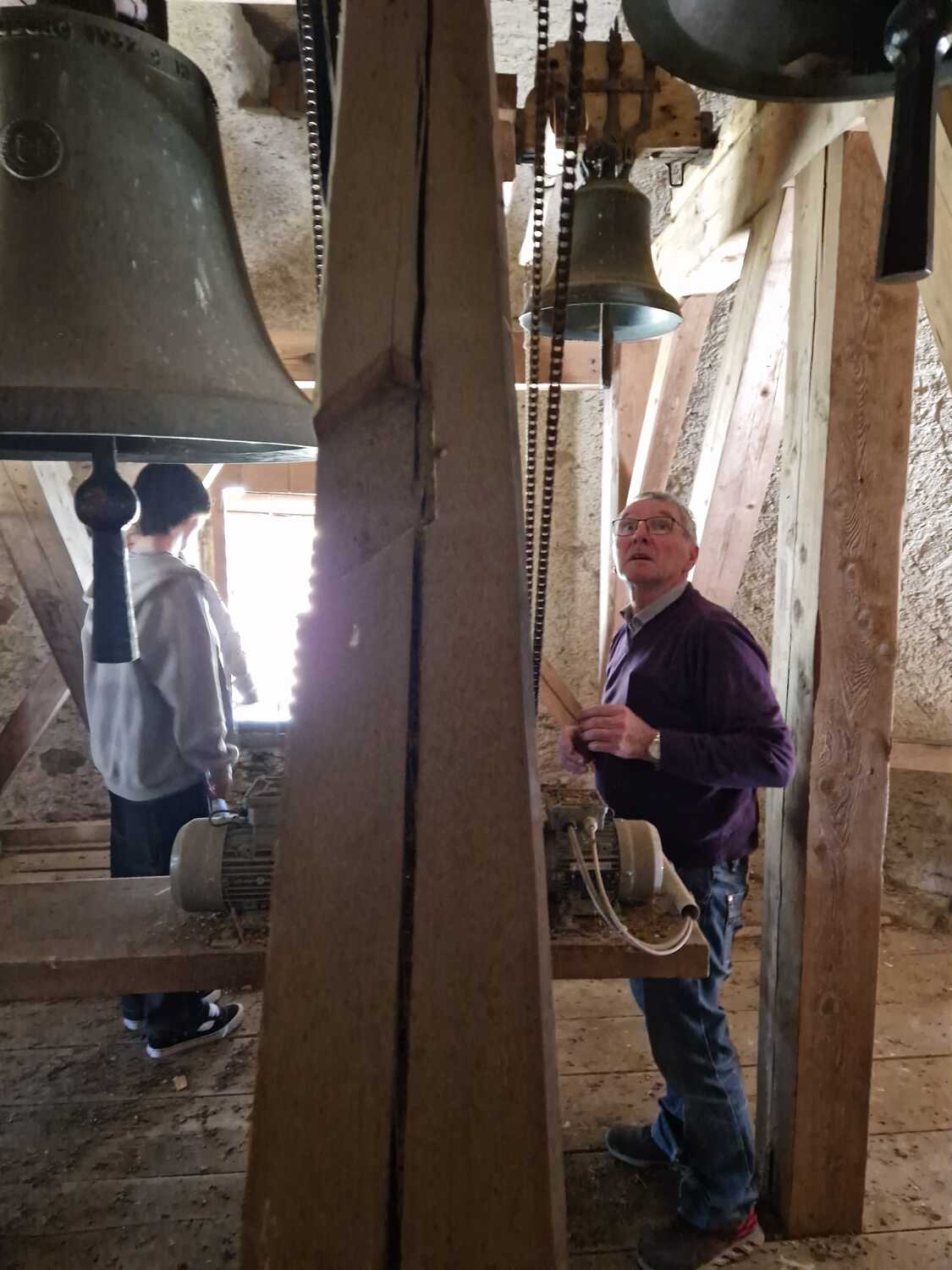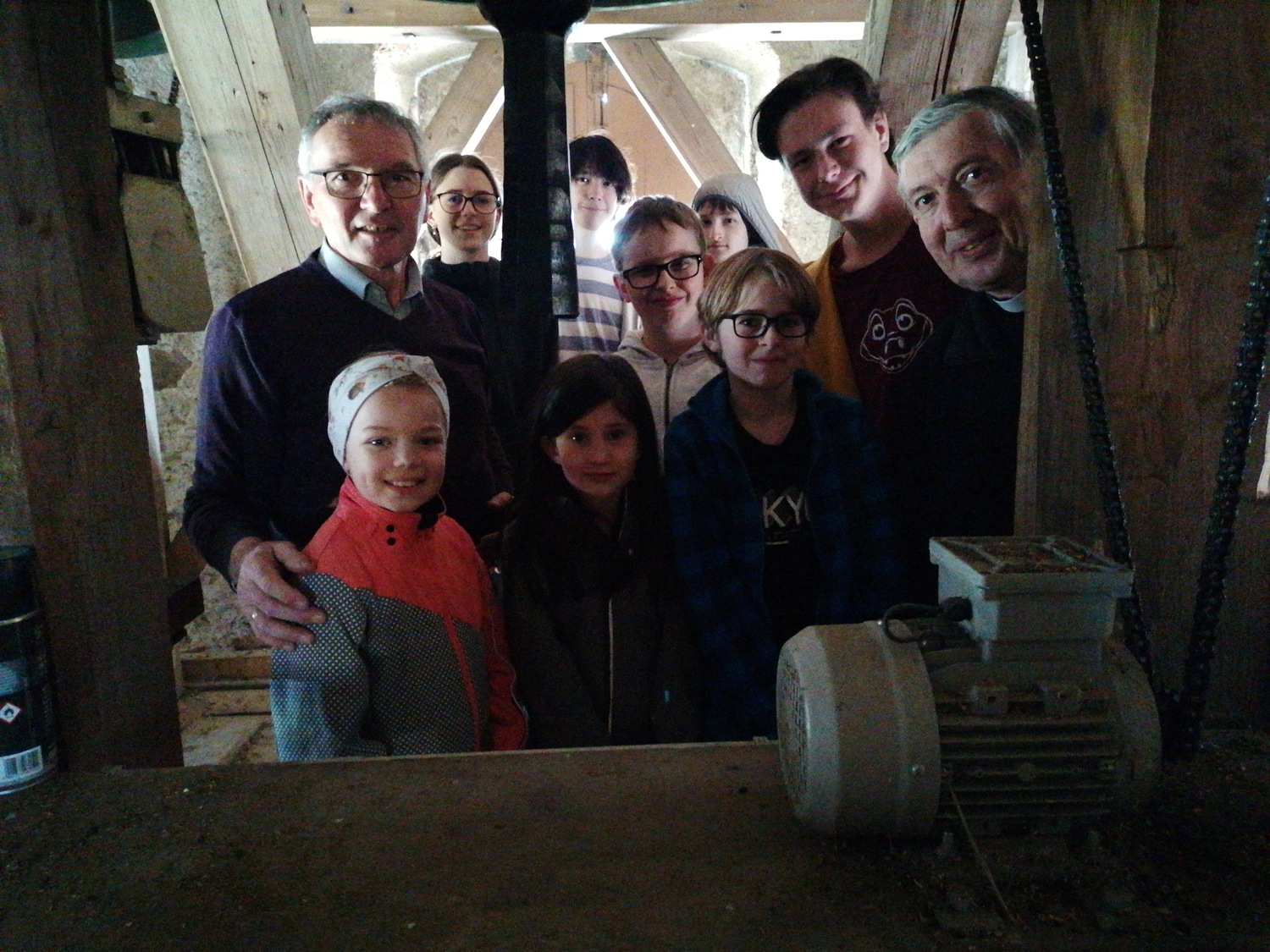 1941 mussten die Glocken für die Finanzierung des Zweiten Weltkrieges abgeliefert werden. Erst im Jahr 1952 wurden bei der Glockengiesserei Pfundner vier Glocken angeschafft und wieder installiert. Die Minis waren begeistert, den Kirchturm von Innen zu sehen wie so ein Läutwerk aussieht und funktioniert. Auch Pfarrer Peter Rückl und das Ministrantenteam waren mit dabei.