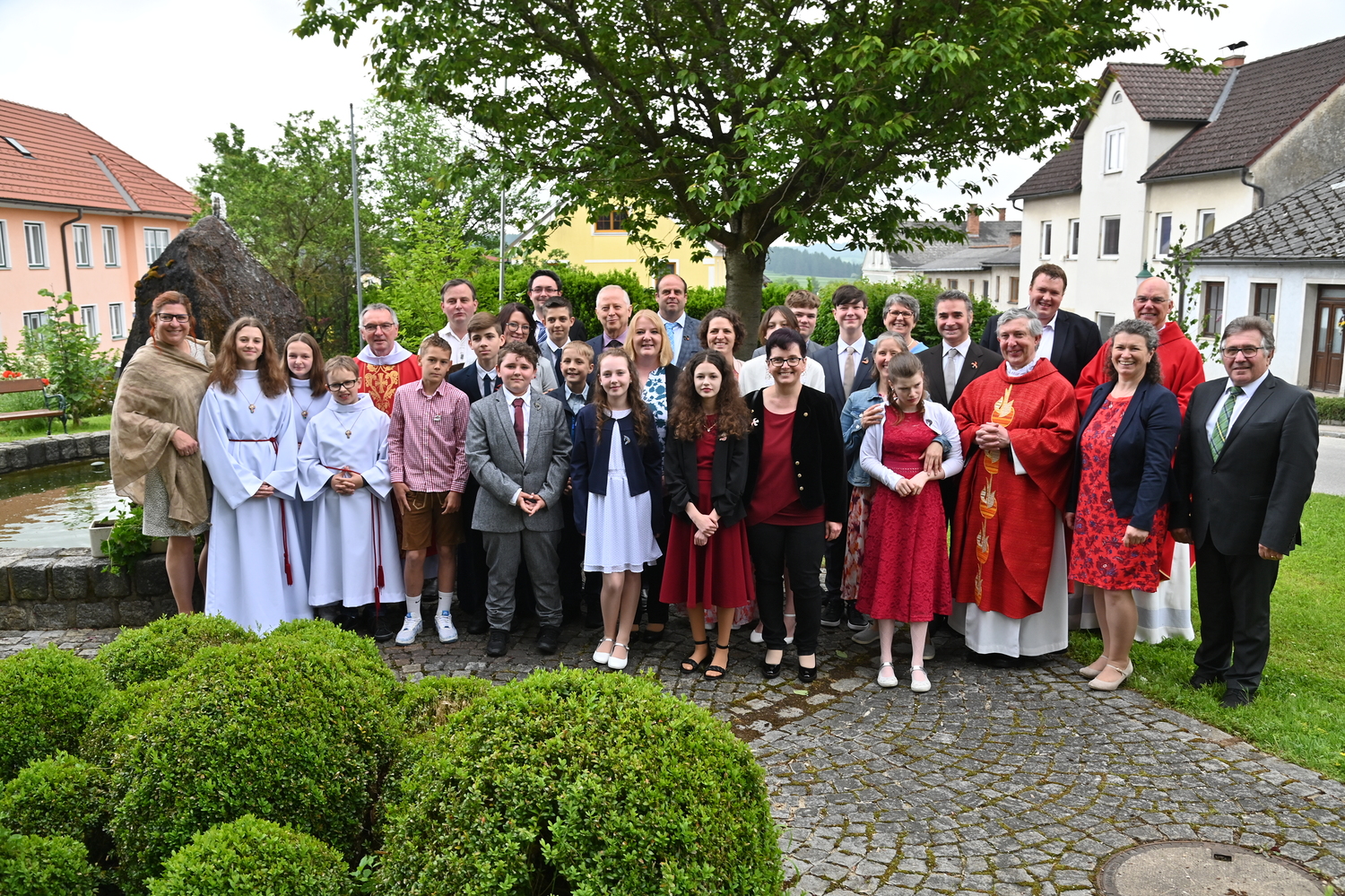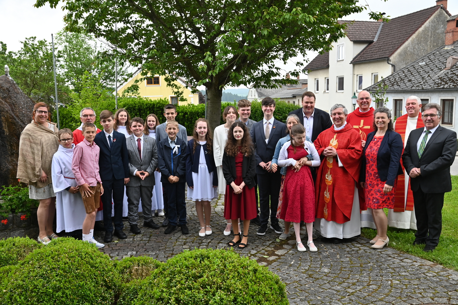 Begleitet wurden die Firmlinge seitens der Pfarre von Marion Weißinger-Harrauer, Andreas Haider, Diakon Hermann Dornhackl, Savannah Schulmeister, Anika Zeilinger, Jugendleiter Roman Guttenbrunner, Pfarrer Peter Rückl, Prälat Conrad Müller, Anita Schnait, Dechant Andreas Bühringer und Bürgermeister Leopold Bock.